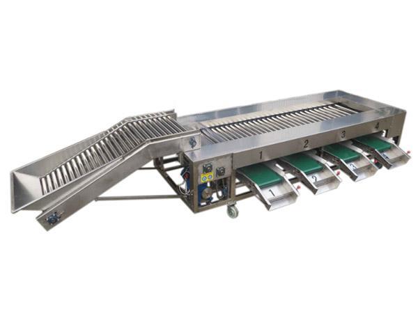 本設(shè)備是全不銹鋼果蔬分選機(jī)械,是由上果輸送機(jī)和滾杠式分選機(jī)組成;上果輸送機(jī)通過(guò)滾杠自動(dòng)旋轉(zhuǎn)來(lái)達(dá)到均勻上料,滾杠式分級(jí)機(jī)根據(jù)果蔬直徑大小來(lái)分選;