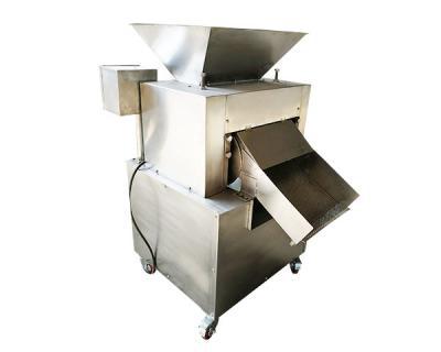 工作原理:飛刀繞自身軸線在固定不動(dòng)的底刀間隙內(nèi)旋轉(zhuǎn),從而使果蔬破碎,轉(zhuǎn)子上有四組飛刀,底刀為一組,視果蔬種類不同,出料斗有斗式和管式兩種型式。在進(jìn)料斗上部加上緩沖裝置,可得到粒度更細(xì)的物料。