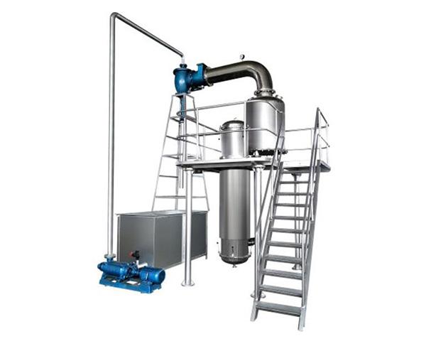 該設備為單效連續(xù)式外循環(huán)真空濃縮設備,適用于熱敏性物料(如果汁、蔬菜汁、藥液等流動性的物料)在真空低溫條 件下連續(xù)蒸發(fā),達到濃縮果汁的效果。
